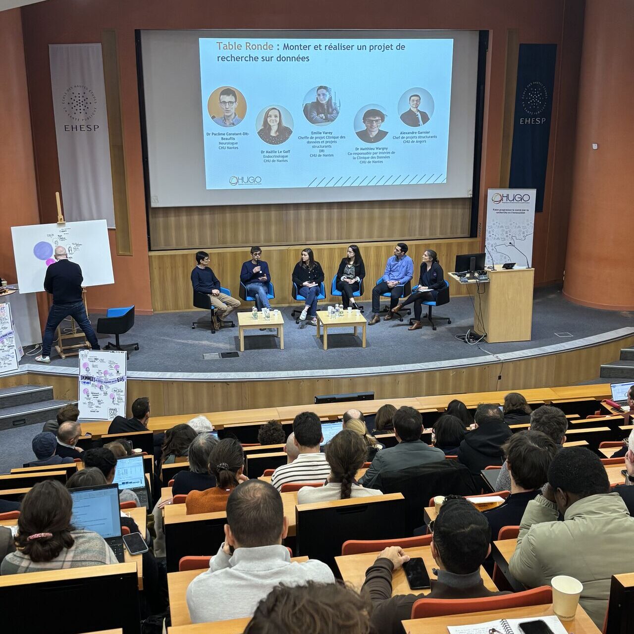La première édition fin 2023 avait permis de discuter de la structuration de la plateforme interrégionale des données de santé, l’Ouest Data Hub (ODH), en tant que premier réseau d’entrepôts de données de santé hospitaliers (EDSH) français et européen, et des premiers résultats de recherche sur données de vie réelle. Cette 2e édition, deux ans après, a mis en avant la dynamique engagée depuis 2016 par la communauté des hospitaliers du Grand Ouest autour du Réseau interrégional des centres de données cliniques (RiCDC) et la maturité acquise depuis 2019 dans HUGO autour des projets de recherche sur données à partir de la plateforme ODH, du montage des études multicentriques à la valorisation scientifique des résultats.